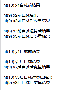 echo "y2后自减后变量结果".var_dump($y2); //9